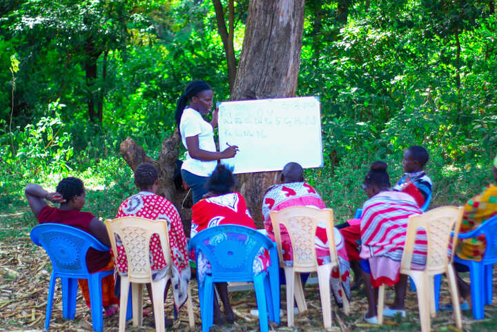 - Whole-community education. We put on sessions to educate the whole community about women’s rights, basic sanitation and women’s health. We are encouraged that some menfolk have started coming along!