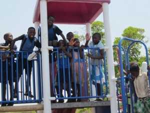 The children that we work with at our Children’s Village and two schools in Zambia received an amazing blessing this summer, in the form of three refurbished playgrounds. From the US, these had been regarded as no longer fit for use there and discarded as a result. Instead they were refurbished, shipped on a container to Zambia, and installed by two short term teams and our local staff. The children had never seen anything like it and are thrilled! In fact, for the first couple of weeks after they were installed, many kids were waking up at three o’clock in the morning to go and play!